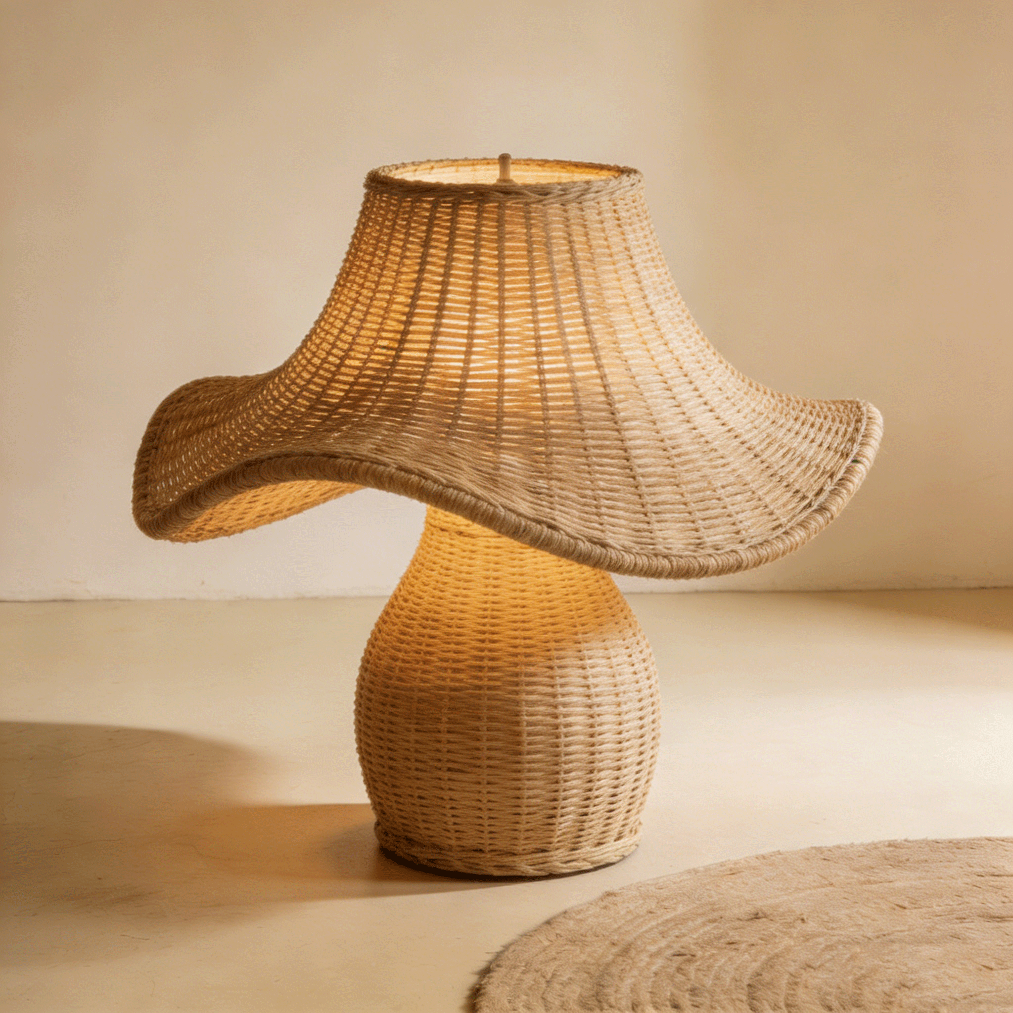 โคมไฟตั้งโต๊ะสไตล์วินเทจหวายทำมือ